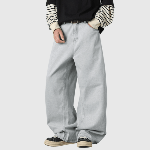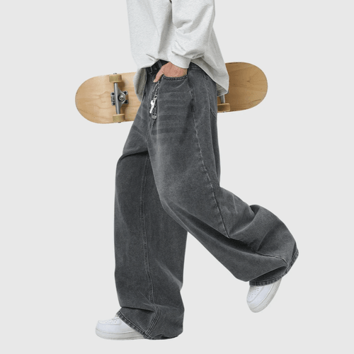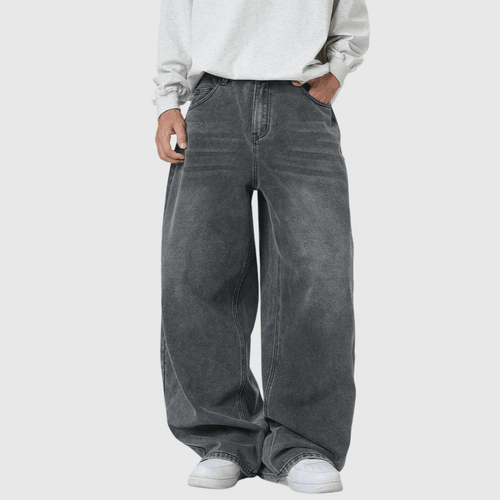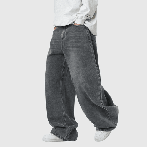 復古基礎洗水做舊 闊腳牛仔直筒 BAGGY 錐形長褲 [SBP-1193]