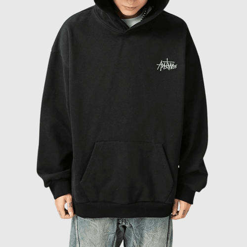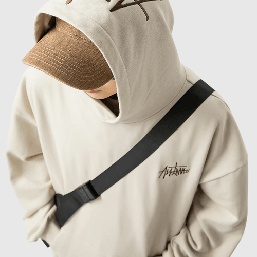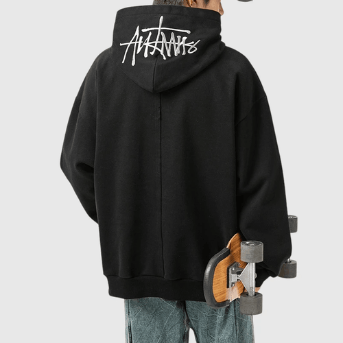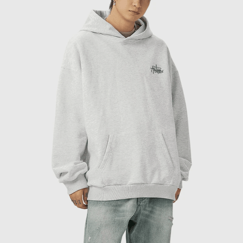 手繪潦草文字刺繡 純棉連帽長袖衛衣 [SBH-1173]