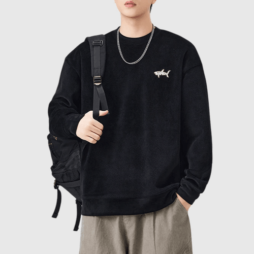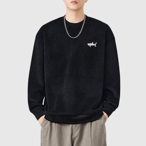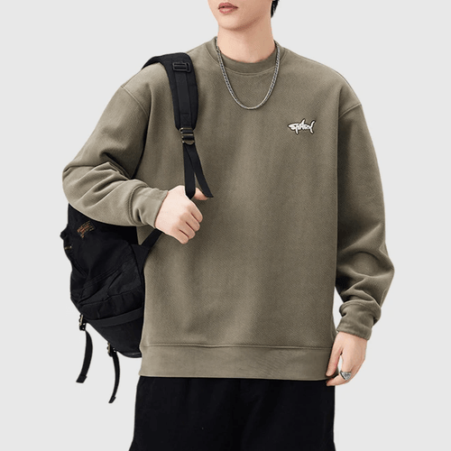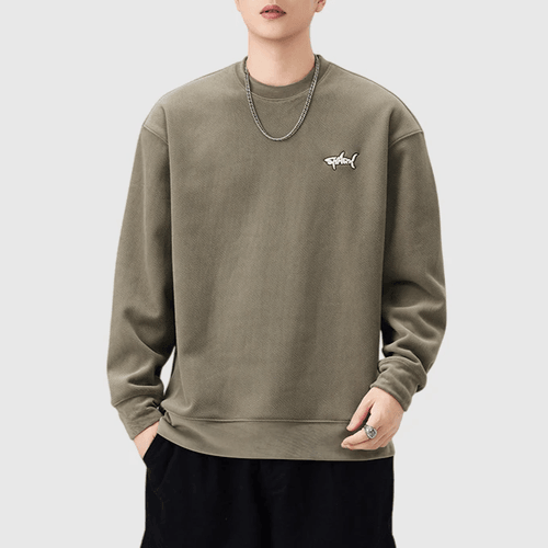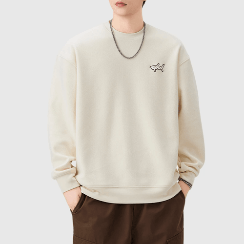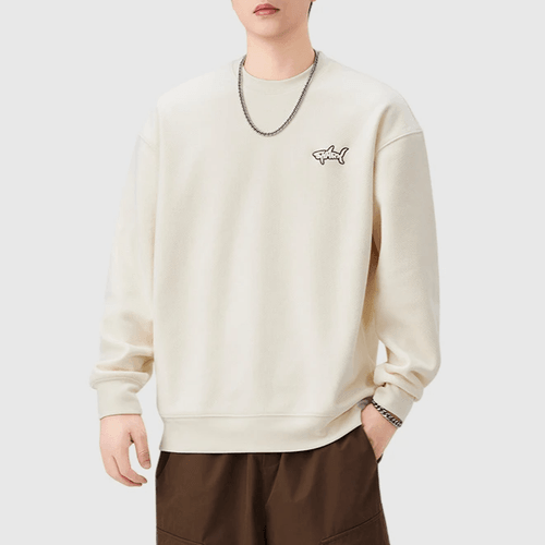 細鯊魚文字圖案刺繡設計 圓領長袖衛衣 [SBH-1328]