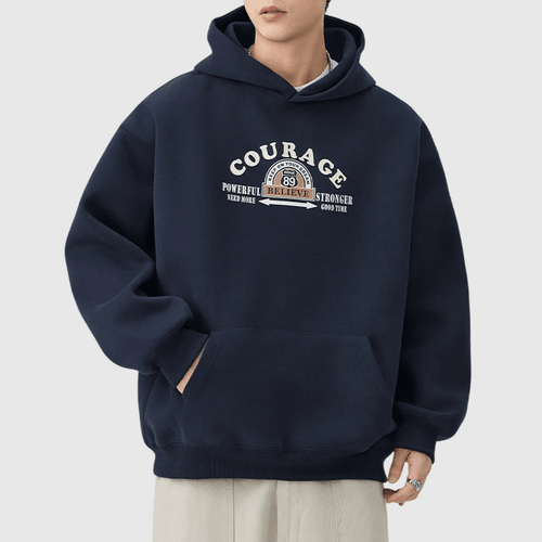 復古美式文字圖案印燙設計 連帽長袖衛衣 [SBH-1332]