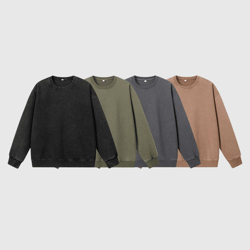復古基礎水洗設計 重磅圓領長袖衛衣 [SBH-1336]