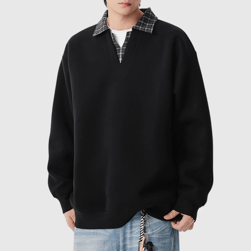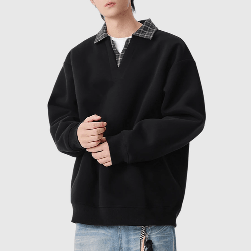 日系撞色恤衫領口拼接設計 長袖恤衫衛衣 [SBH-1340]