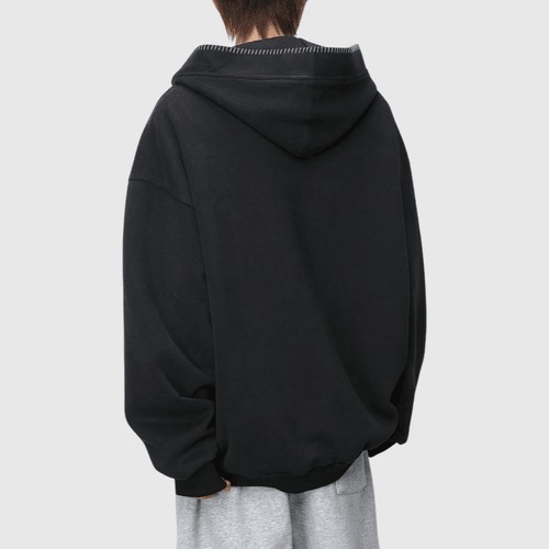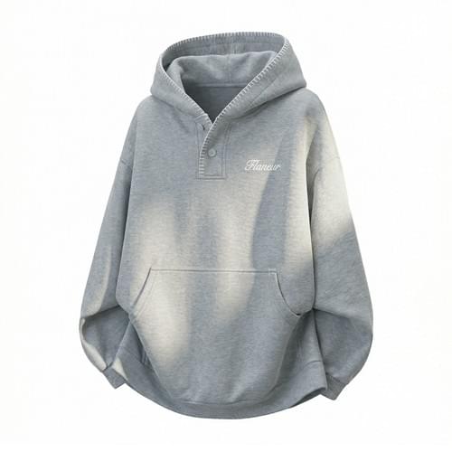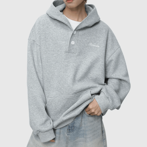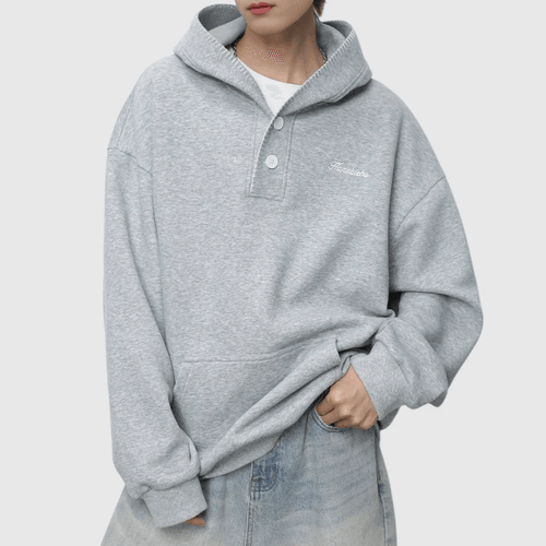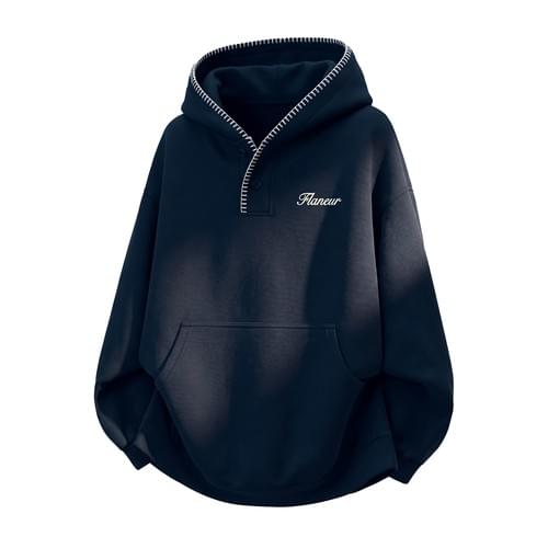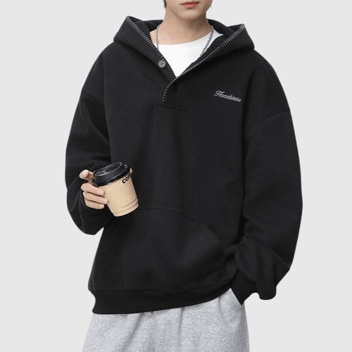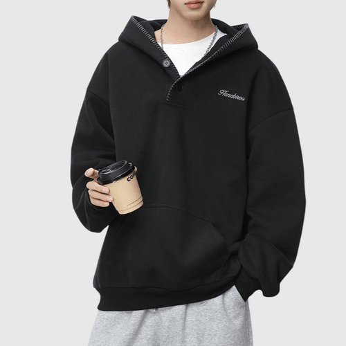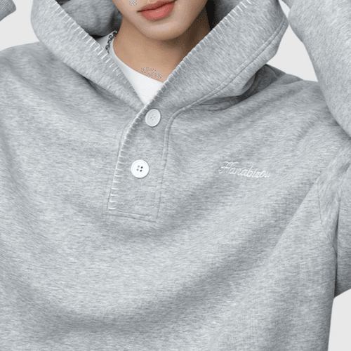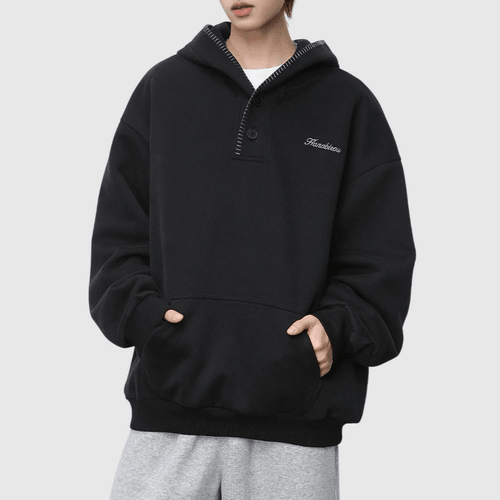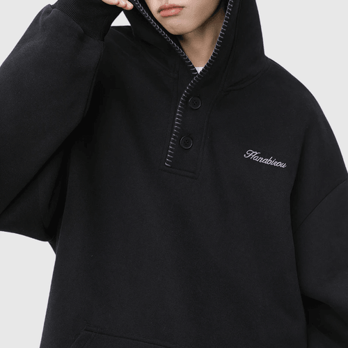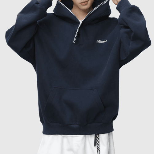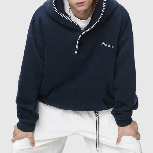 日系帽簷撞色縫線設計 半開領鈕扣連帽衛衣 [SBH-1344]