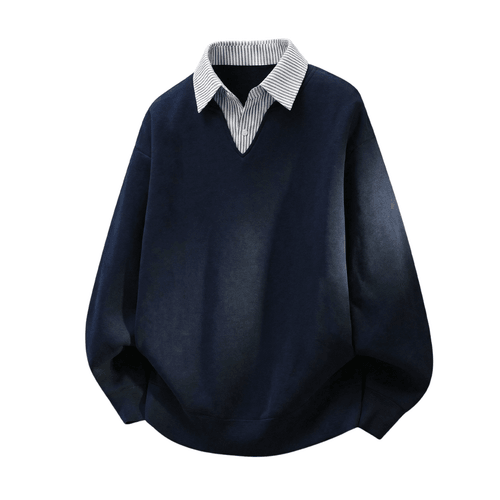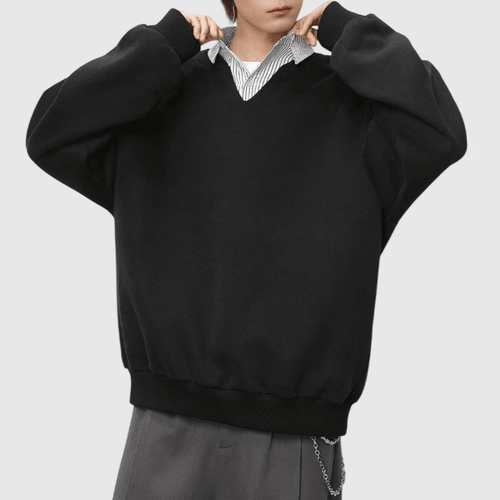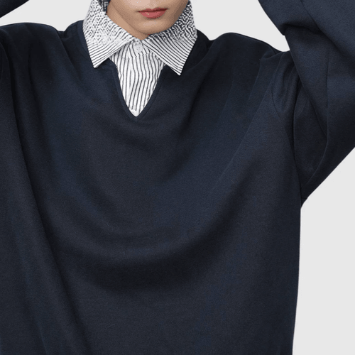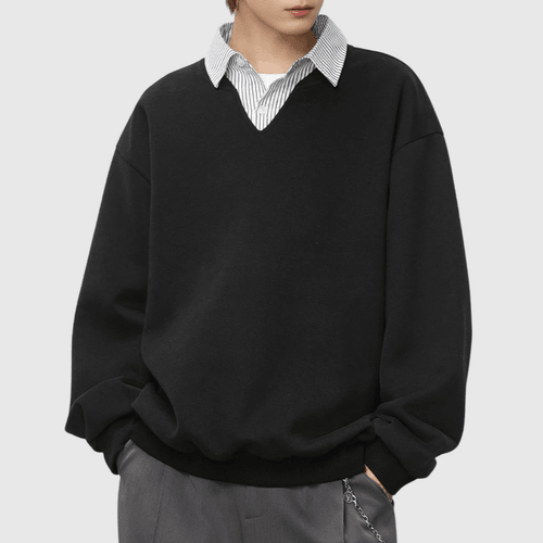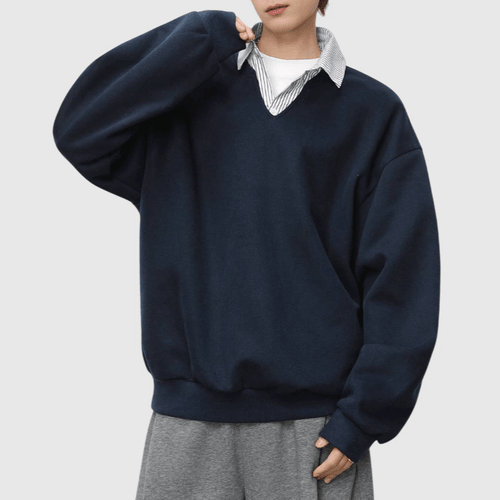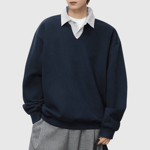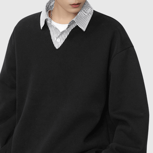 日系假兩件式恤衫拼接 圓領長袖衛衣 [SBH-1345]