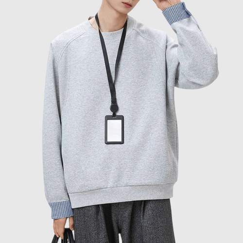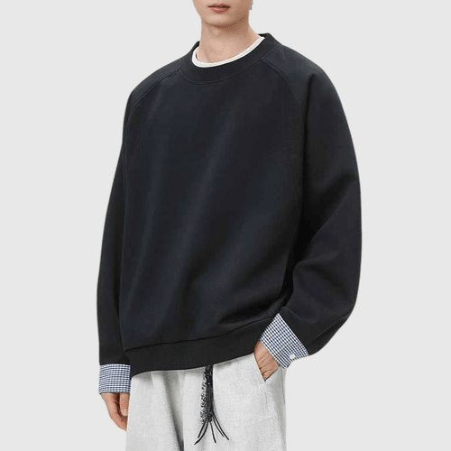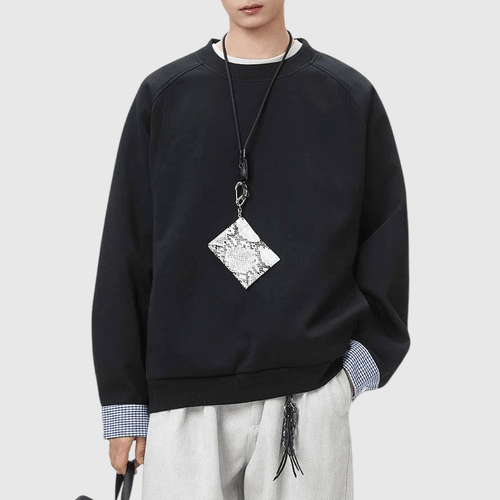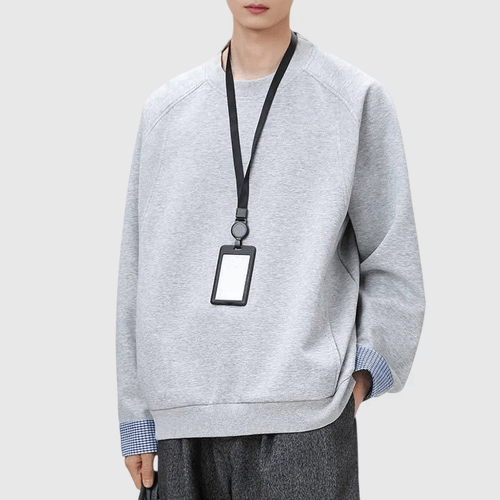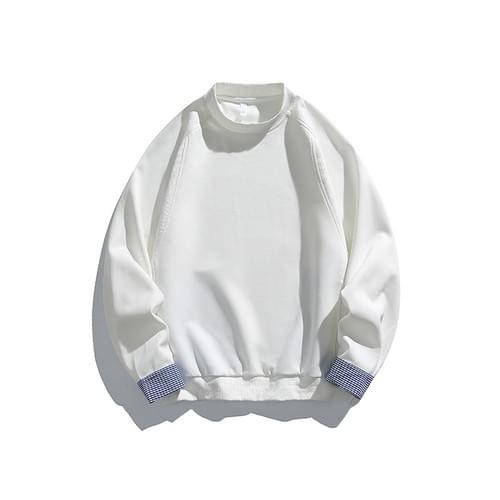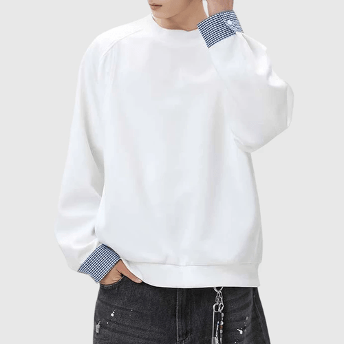 日系手袖格紋恤衫縫紉拼接 長袖衛衣 [SBH-1347]