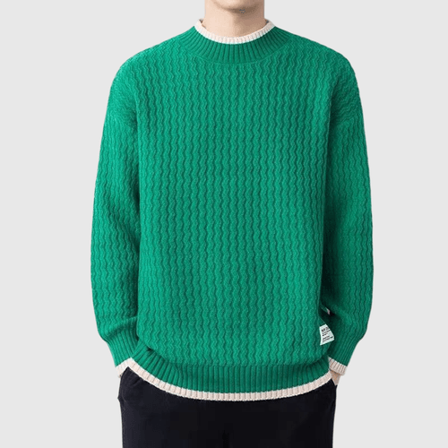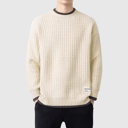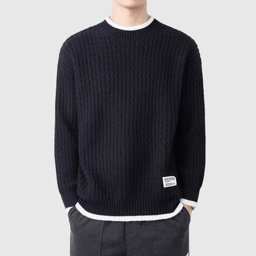 日系簡約條紋小撞色 圓領針織毛衣 [SBK-1031]