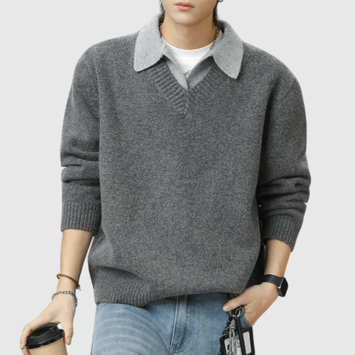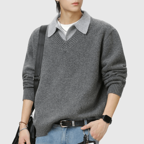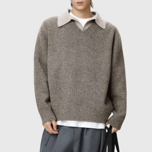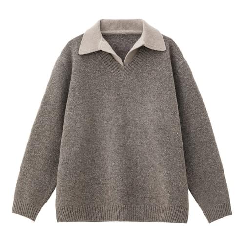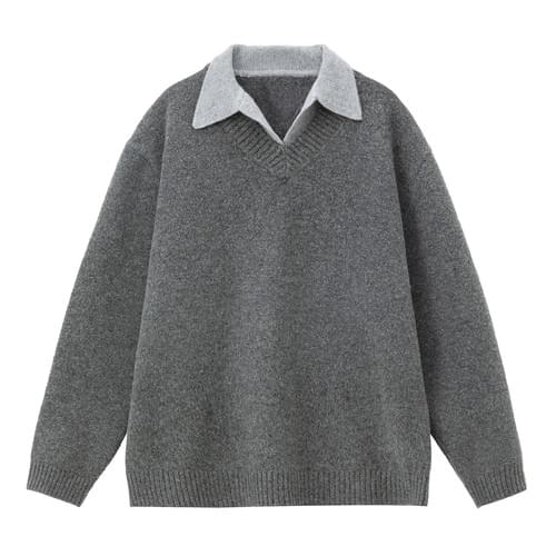 日系層次假兩件式設計 針織毛衣 [SBK-1118]