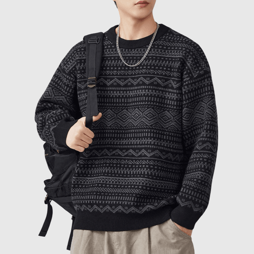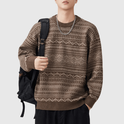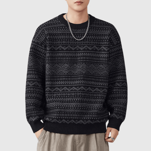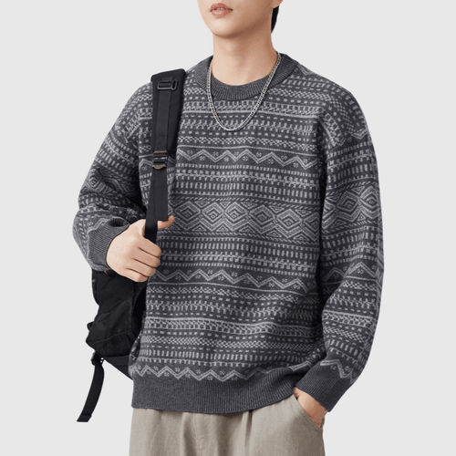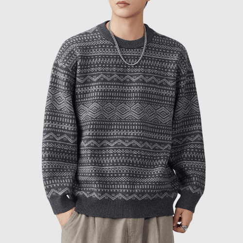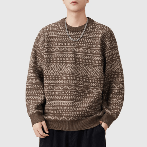 日系復古民族風提花圖案 圓領針織毛衣 [SBK-1119]