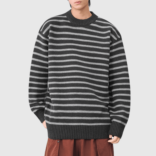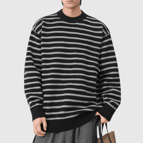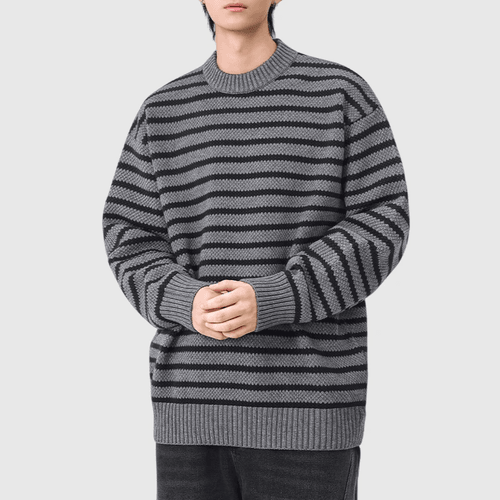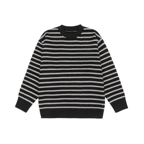 日系復古橫間條紋撞色 圓領針織毛衣 [SBK-1120]