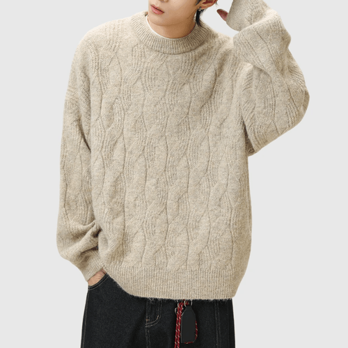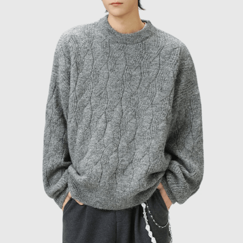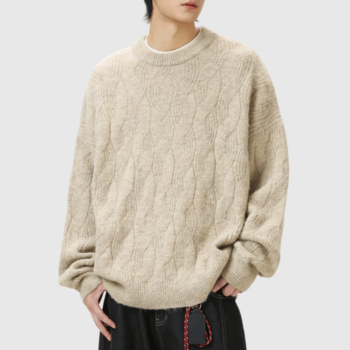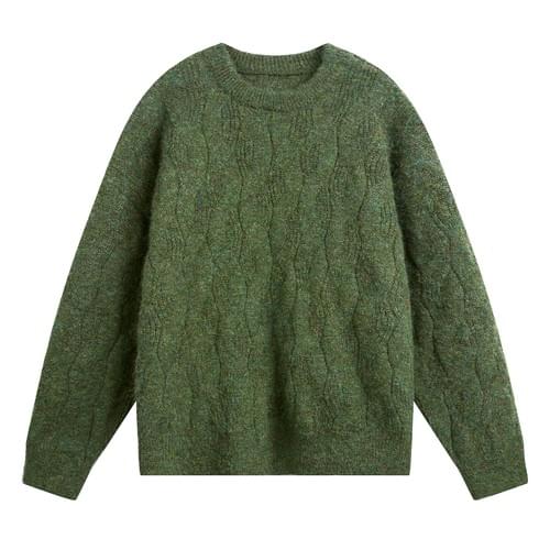 日系層次波浪針織紋理 圓領毛衣 [SBK-1123]