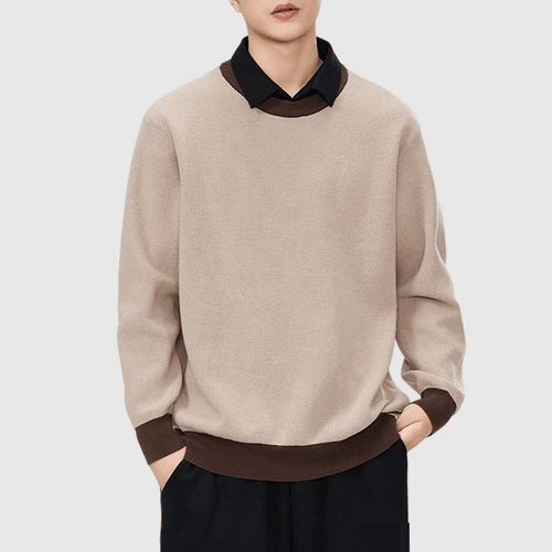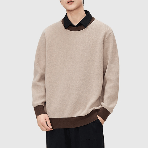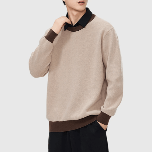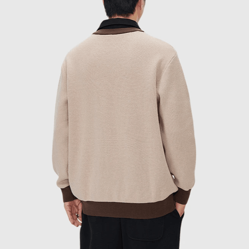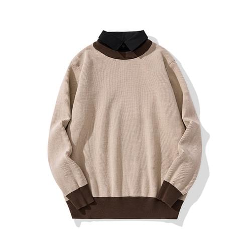 日系假兩件式色系撞色拼接 針織毛衣恤衫 [SBK-1129]