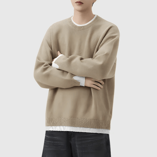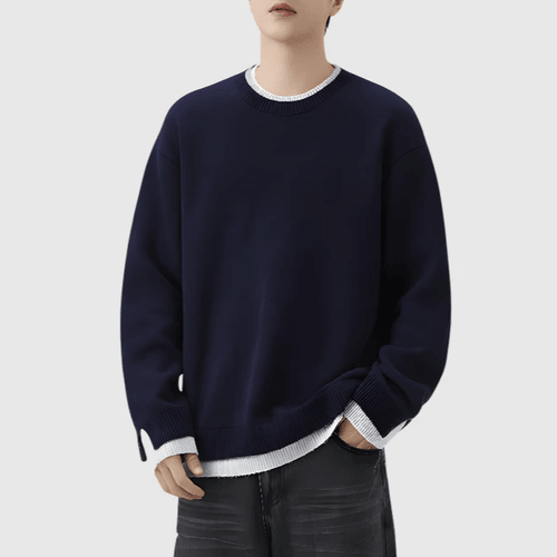 日系假兩件式混紡絨毛編織 針織毛衣 [SBK-1135]