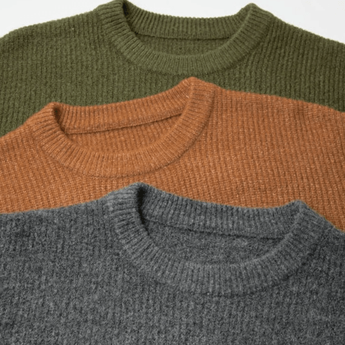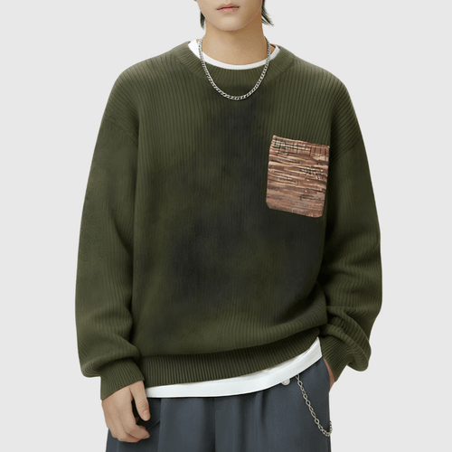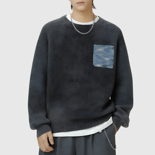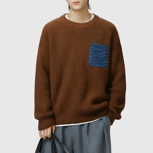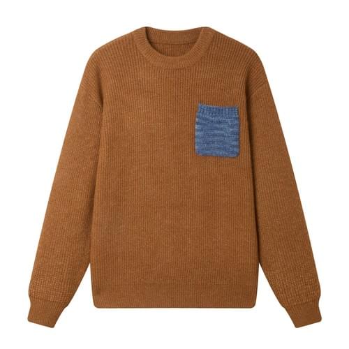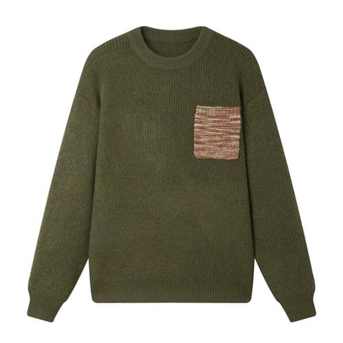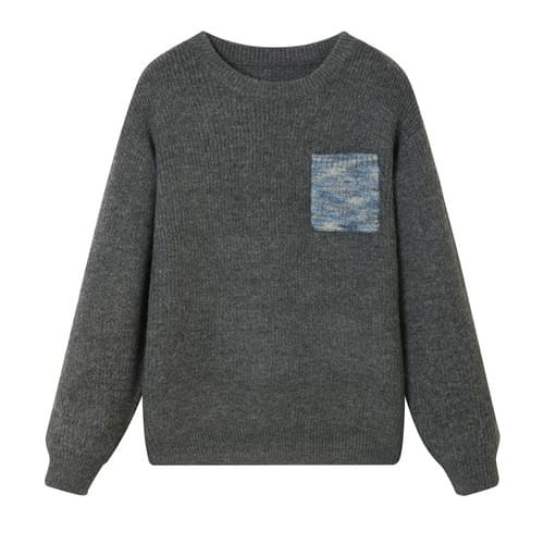日系前袋混色縫紉 重磅圓領針織毛衣 [SBK-1137]