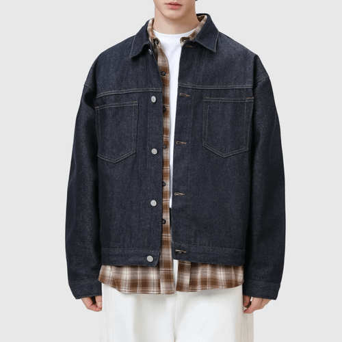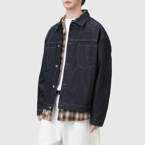 日系基礎雙設計前袋明線 純棉水洗牛仔長袖外套 [SBO-1221]