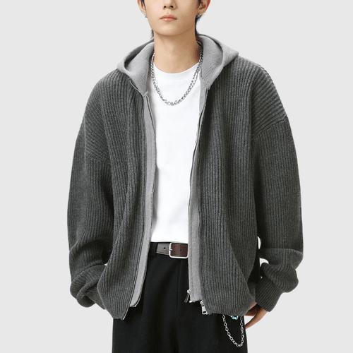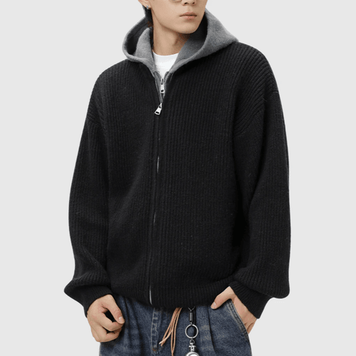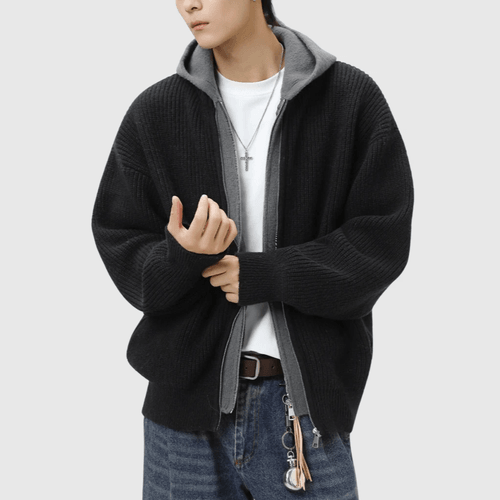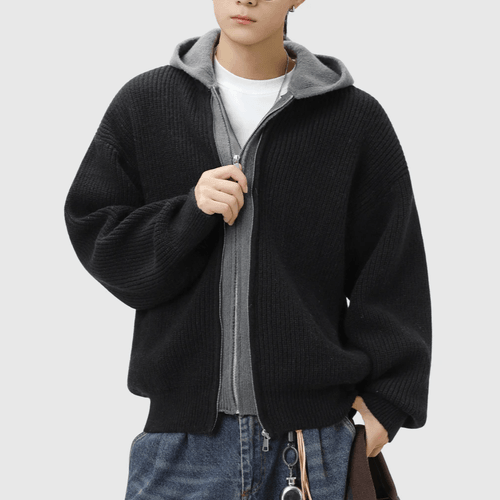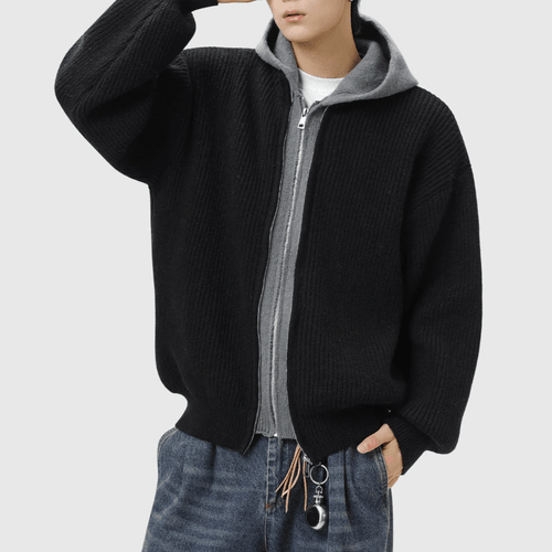 日系撞色層次假兩件式 粗線針織長袖外套 [SBO-1420]