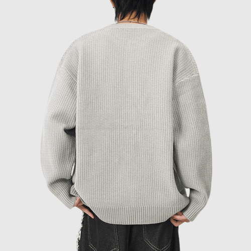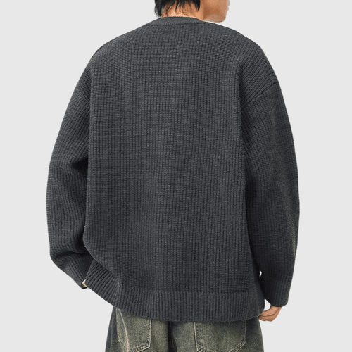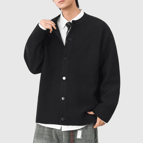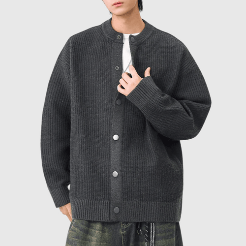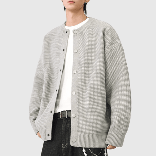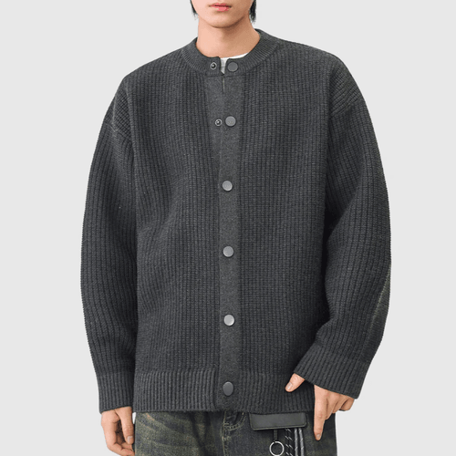 日系立體粗線紗織紋理 針織圓領開胸外套 [SBO-1462]