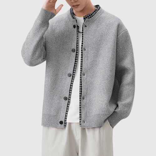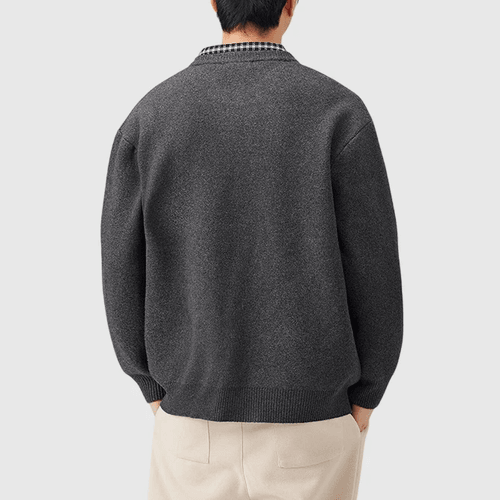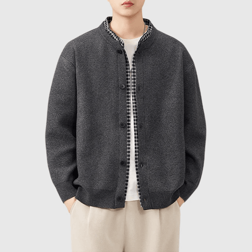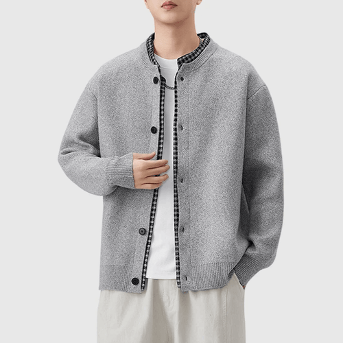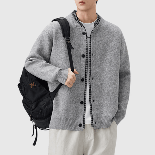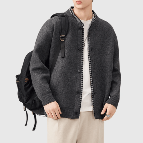 日系假兩件式恤衫縫紉拼接 針織開胸外套 [SBO-1466]