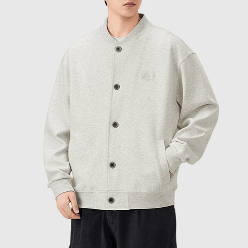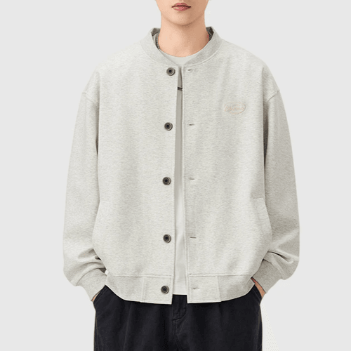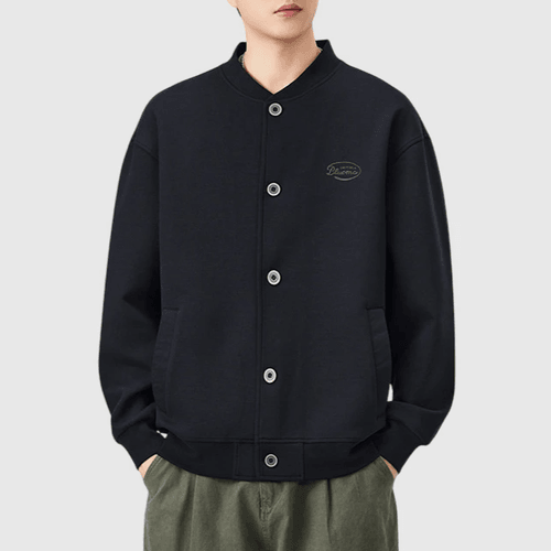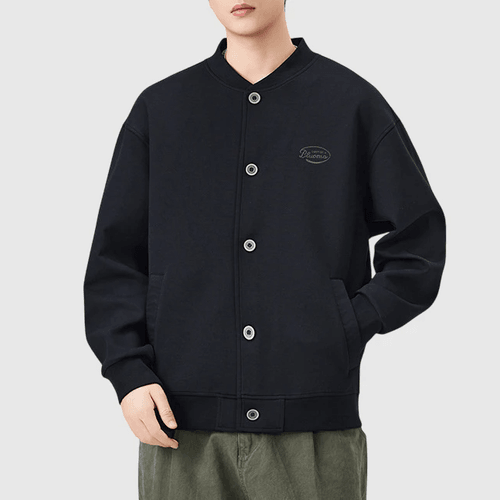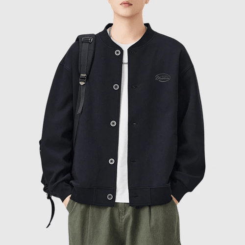 日系文字圖案刺繡撞色鈕扣設計 棉織棒球外套 [SBO-1469]
