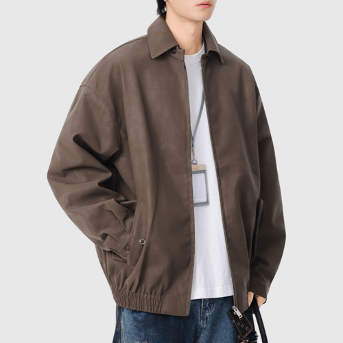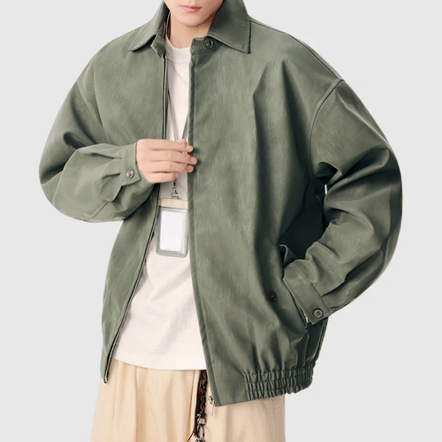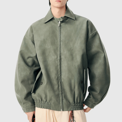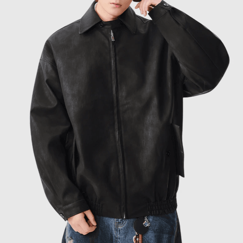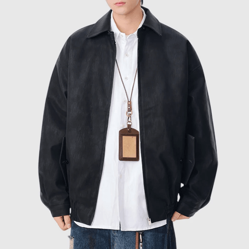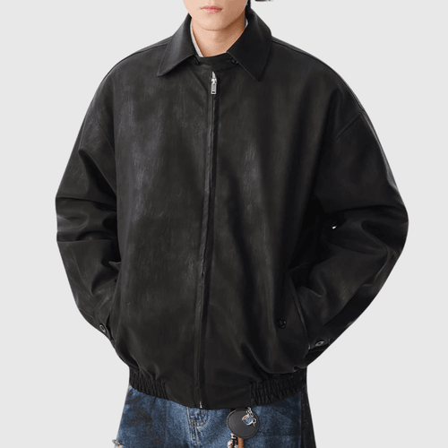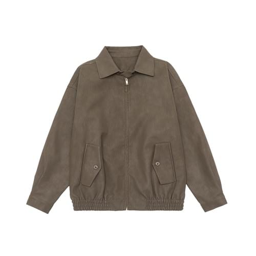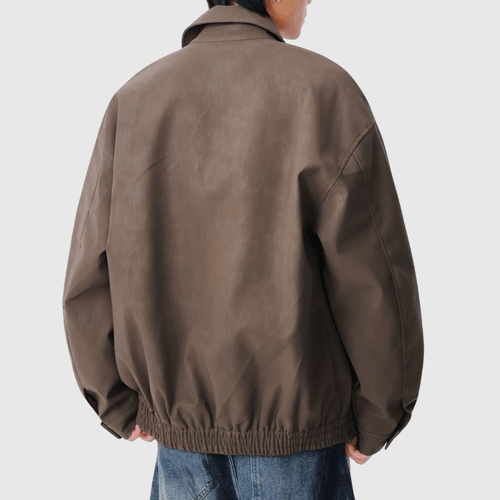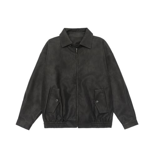 日系基礎輕水洗紮染雙側袋設計 長袖皮革外套 [SBO-1476]