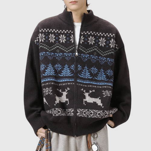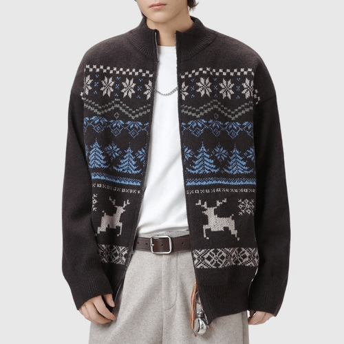 復古民族風提花圖案 針織開胸外套 [SBO-1482]
