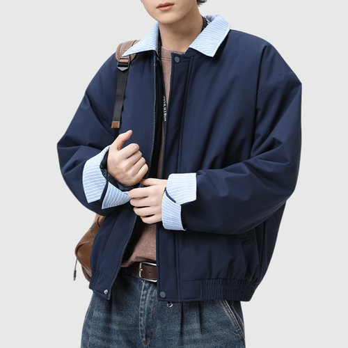 領口可拆卸假兩件式恤衫拼接 棒球外套 [SBO-1491]