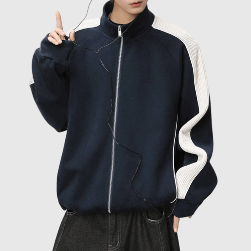 日系肩膊縫紉線條撞色拼接設計 長袖衛衣外套 [SBO-1496]