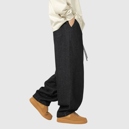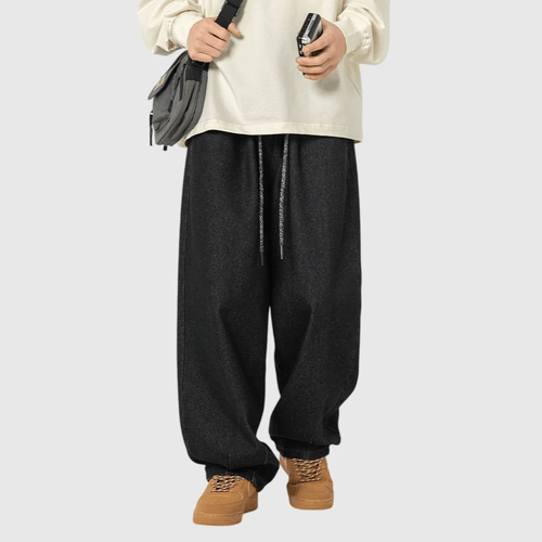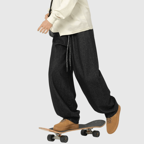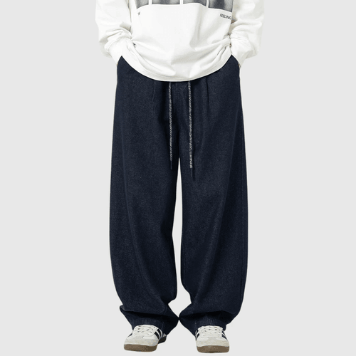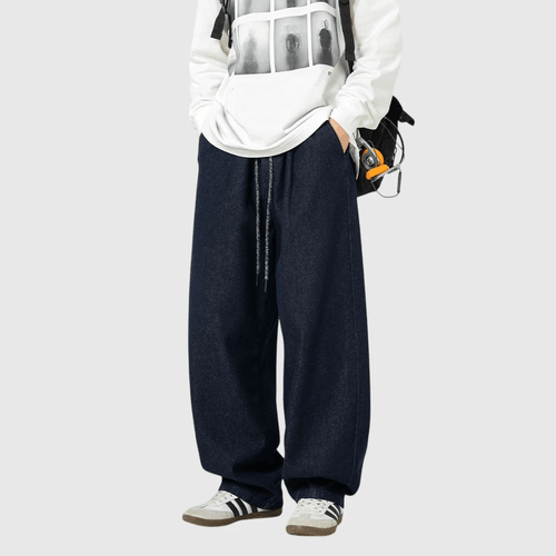 日系簡約拼色鬆緊繩設計 垂感闊腳水洗牛仔褲 [SBP-1139]