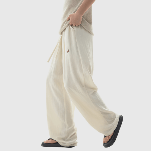 日系基礎輕便透氣 麻質闊腿直筒垂感長褲 [SBP-1195]