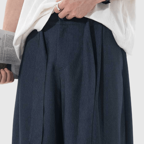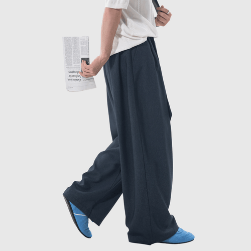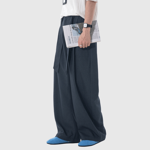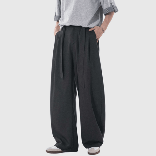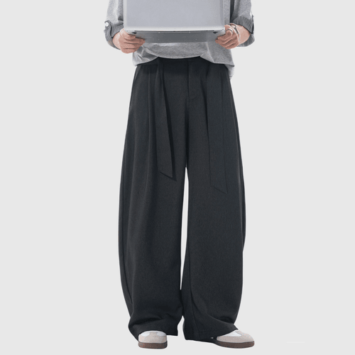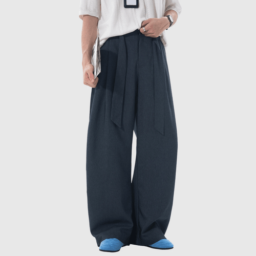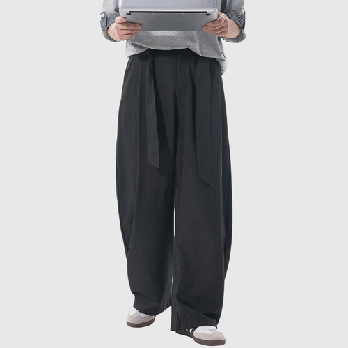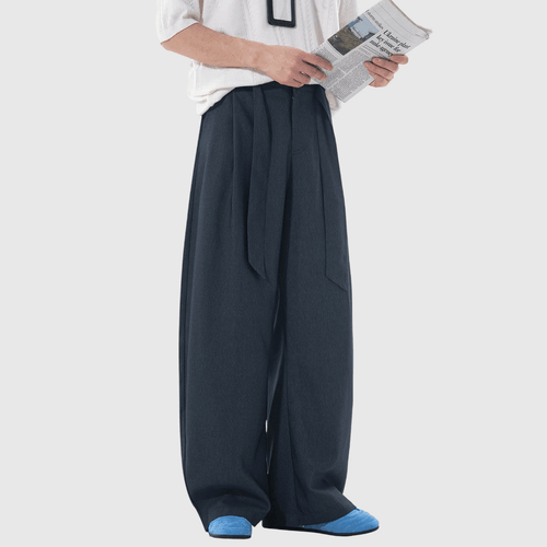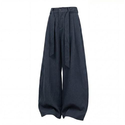 日系基礎闊腰繩設計 仿牛仔布闊腿直筒垂感長褲 [SBP-1203]