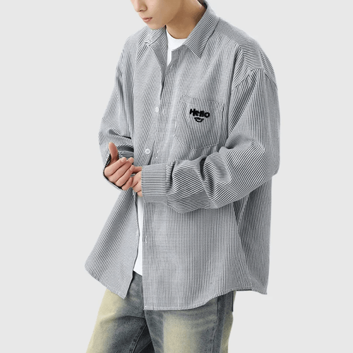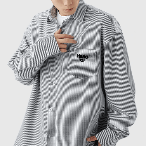 日系垂直條紋紋理前袋立體文字刺繡 輕身透氣長袖恤衫 [SBS-1188]