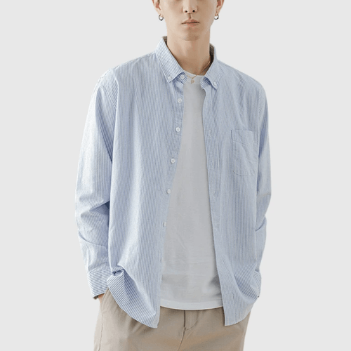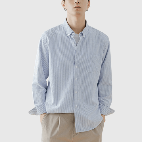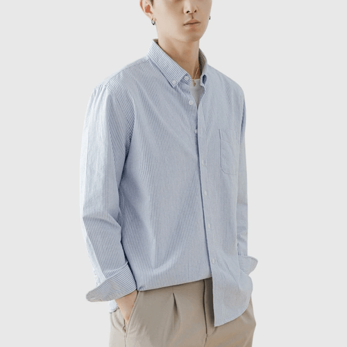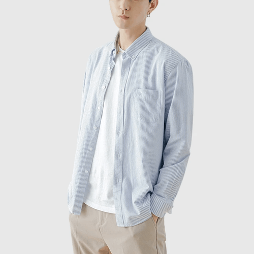 日系簡約前袋幼直間條紋 合身純棉長袖恤衫 [SBS-1212]