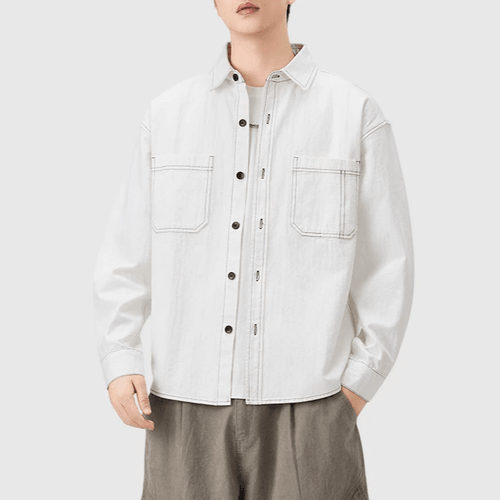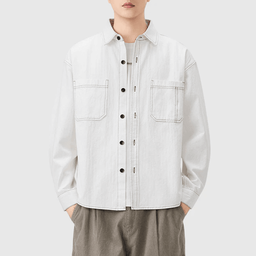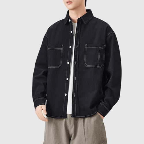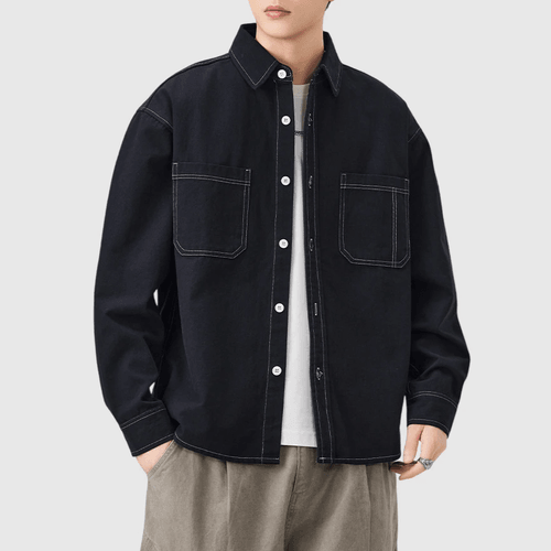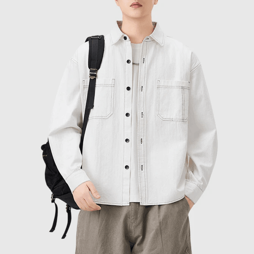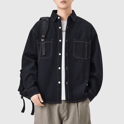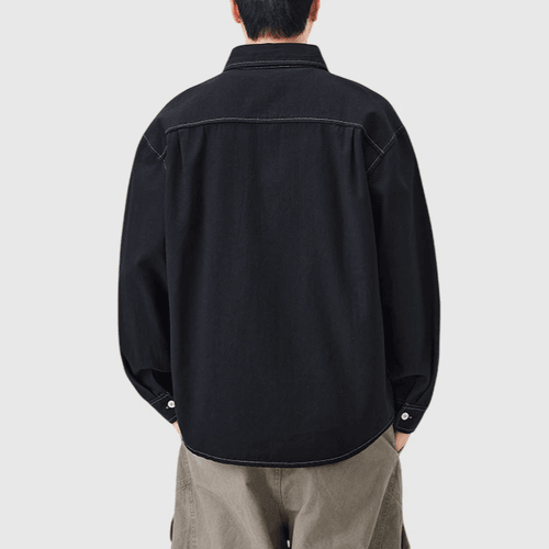 復古基礎水洗撞色輯明線工裝 純棉牛仔長袖恤衫 [SBS-1277]