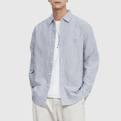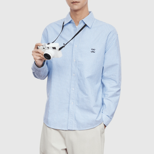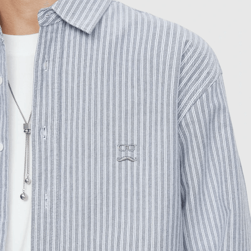 日系垂直條紋眼鏡鬍鬚圖案刺繡 純棉長袖恤衫 [SBS-1293]