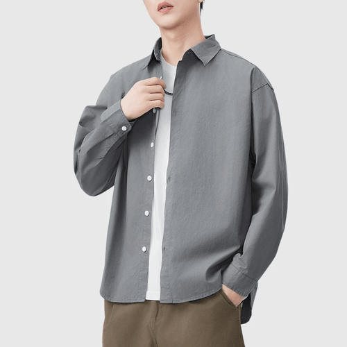 日系基礎輕水洗純色設計 純棉長袖恤衫 [SBS-1369]
