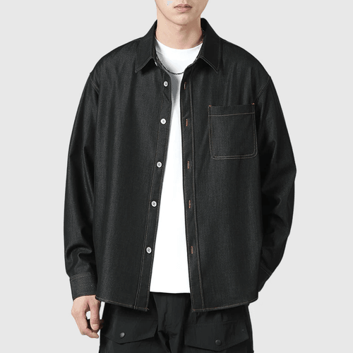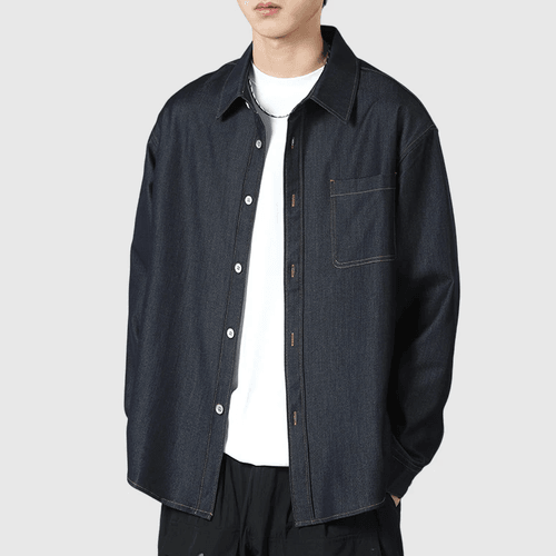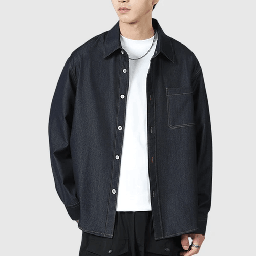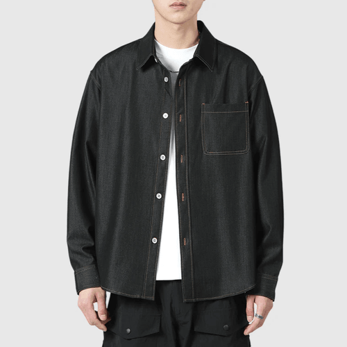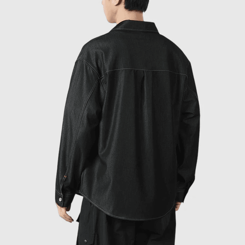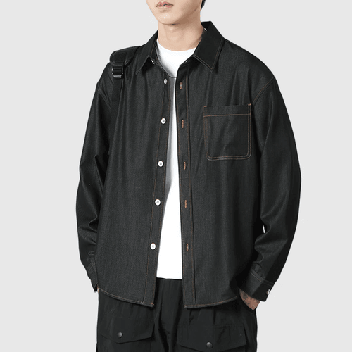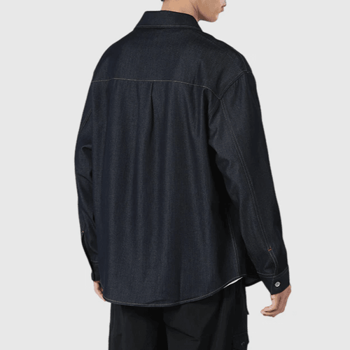 復古基礎前袋輯明線 牛仔長袖恤衫 [SBS-1370]
