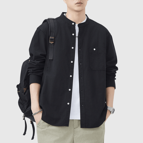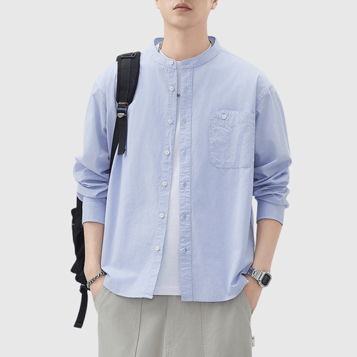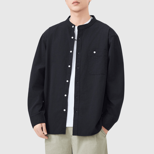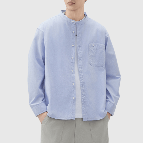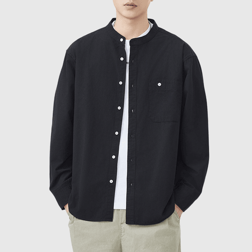 日系不規則鈕扣前袋 純棉長袖恤衫 [SBS-1371]