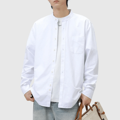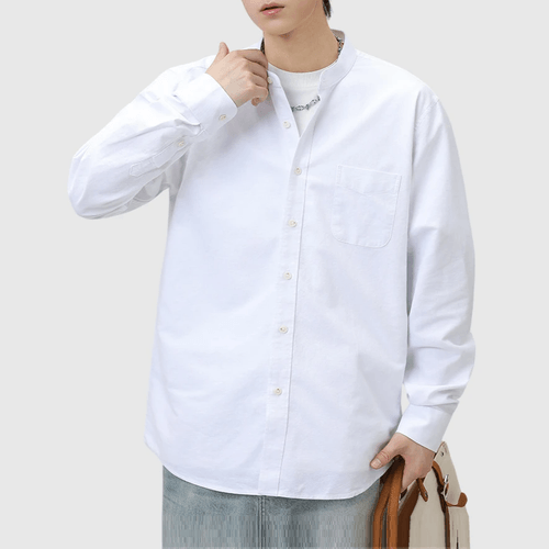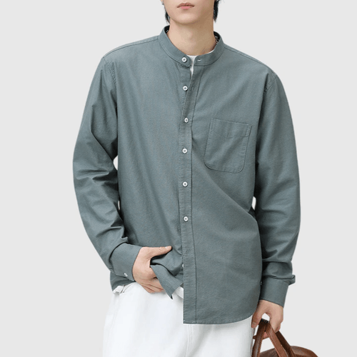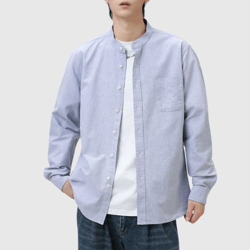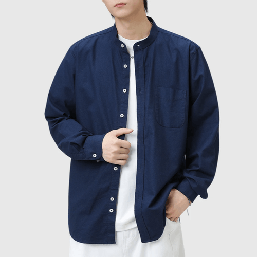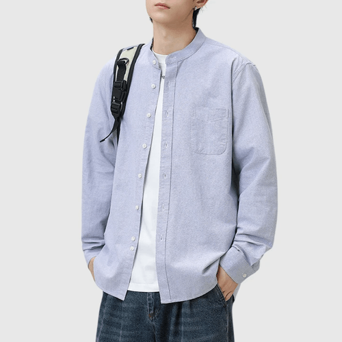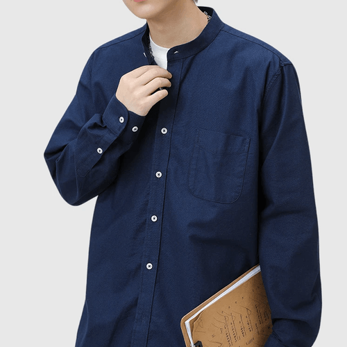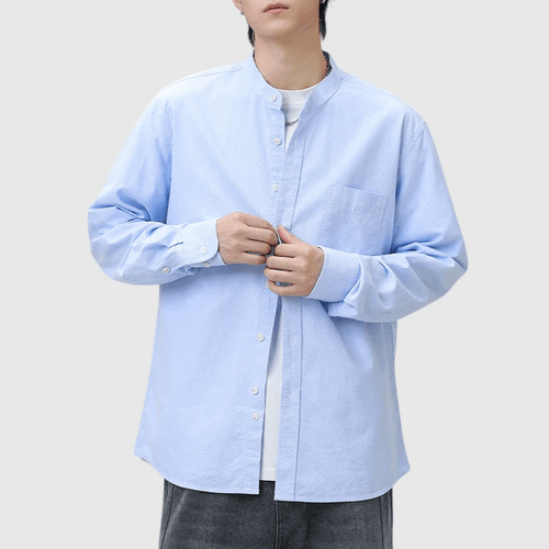 日系基礎前袋設計 純棉立領長袖恤衫 [SBS-1372]
