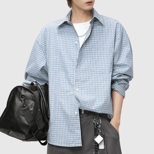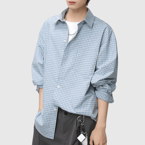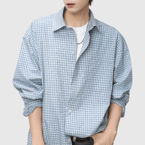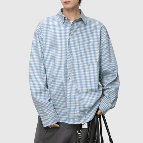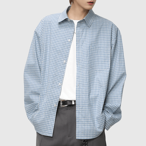 復古基礎細格仔紋理工藝 長袖恤衫 [SBS-1375]
