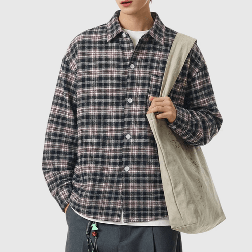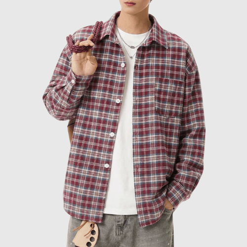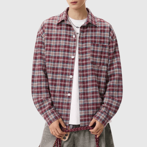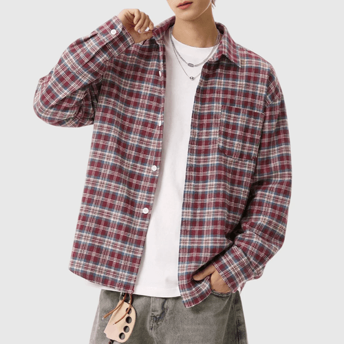 復古基礎色系撞色格仔紋理工藝 長袖恤衫 [SBS-1376]