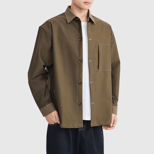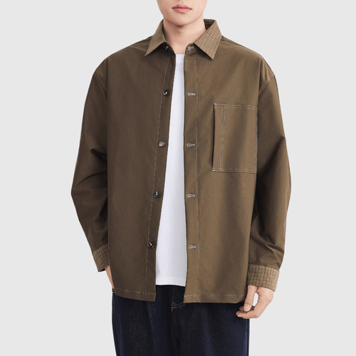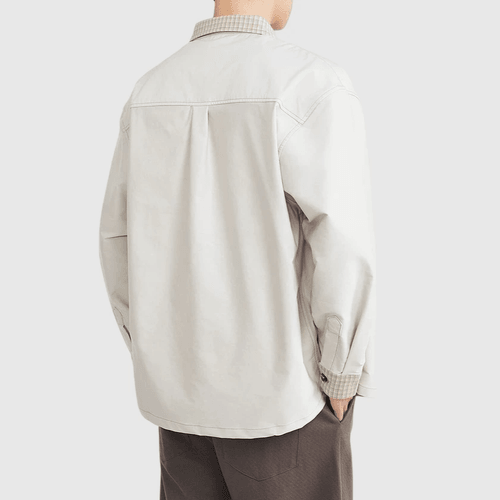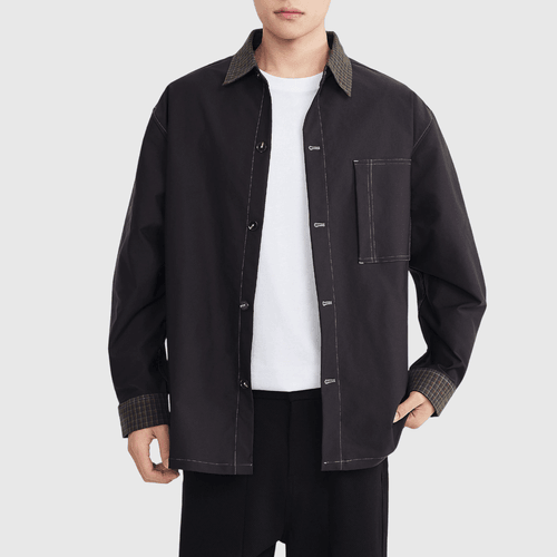 日系復古輯明線領口格紋拼接 長袖恤衫 [SBS-1381]
