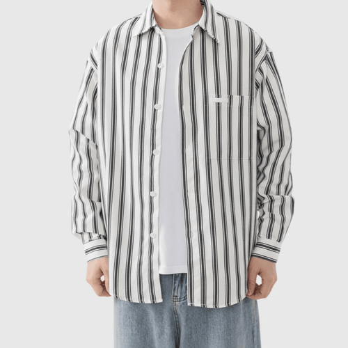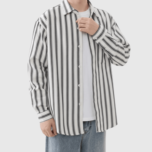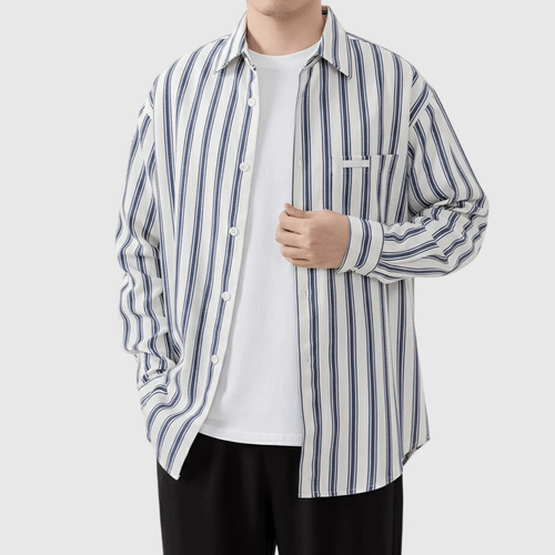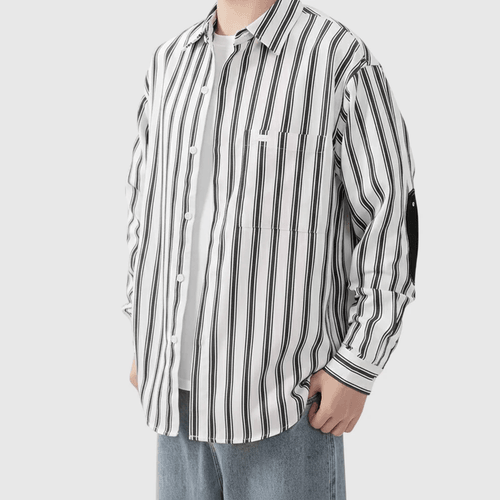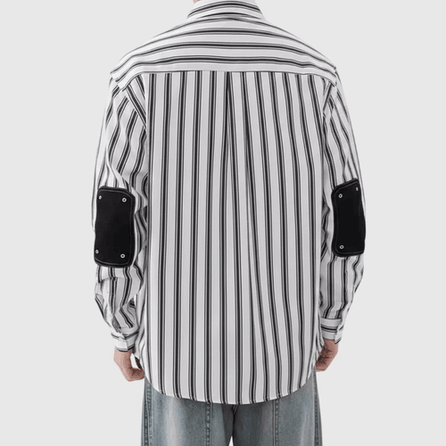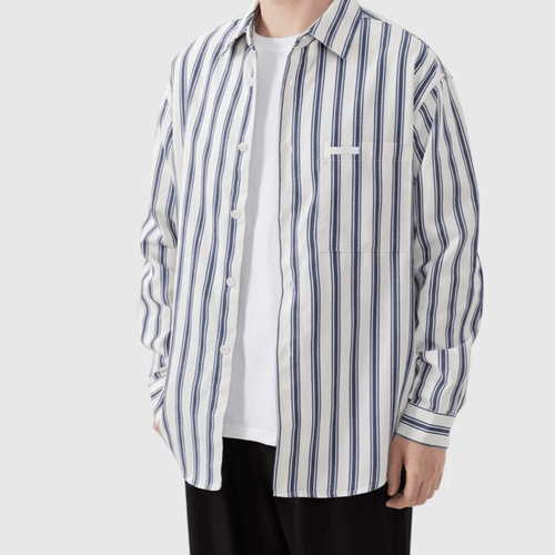 日系手袖牛仔布縫紉條紋色織 長袖恤衫 [SBS-1389]