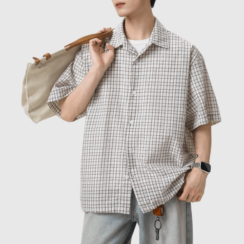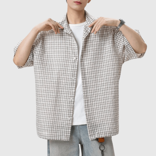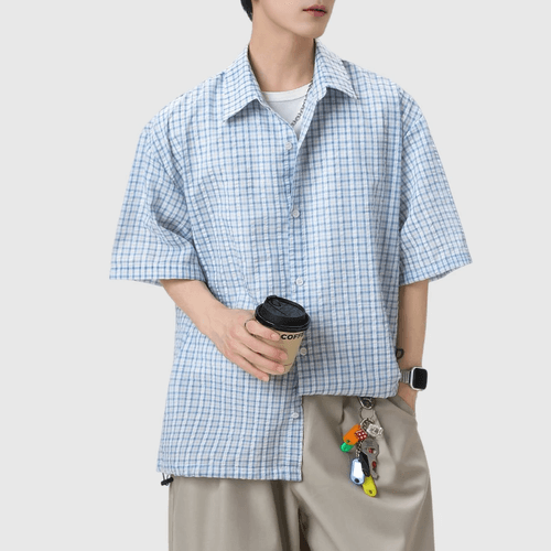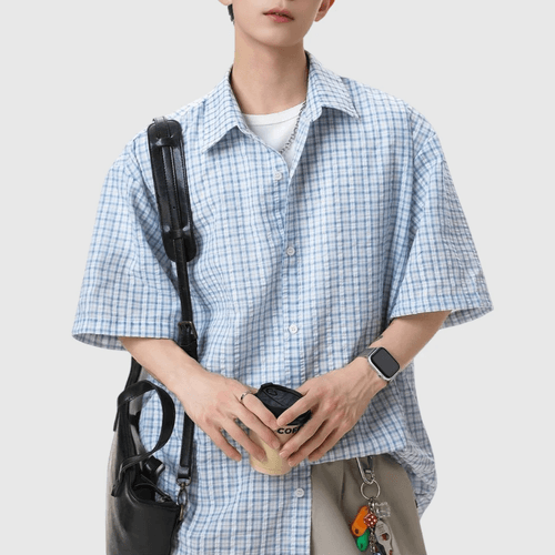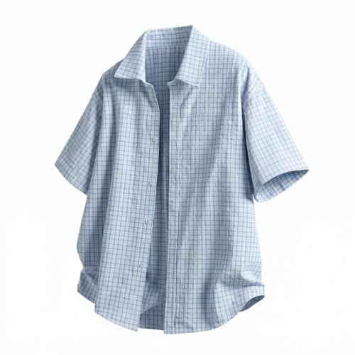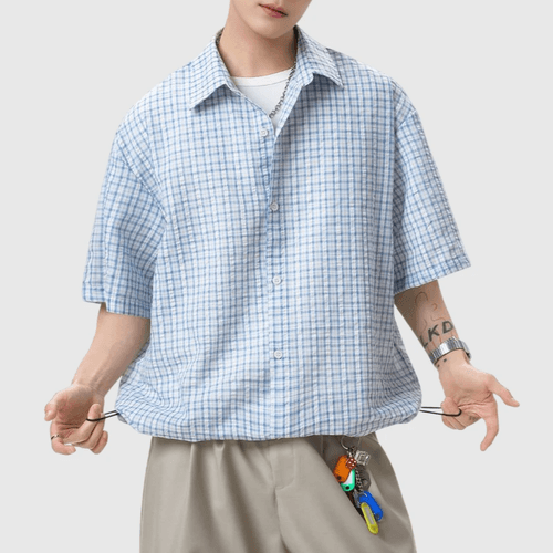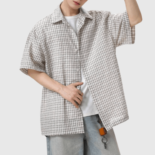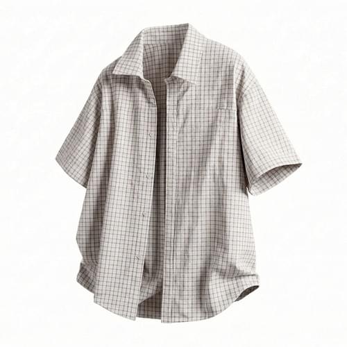 日系基礎細格仔皺褶紋理工藝 透氣短袖恤衫 [SBS-1394]