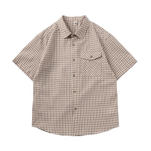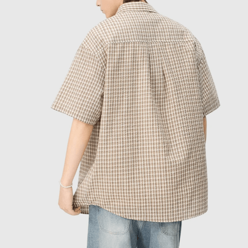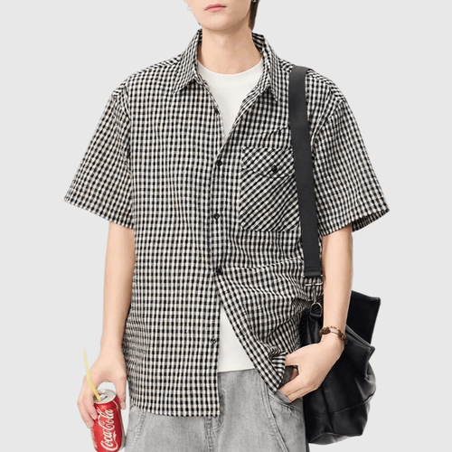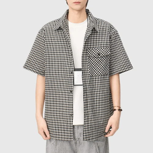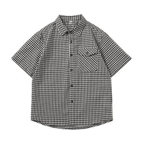 日系基礎細格仔色織工藝 透氣短袖恤衫 [SBS-1402]