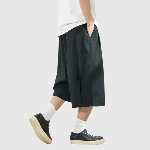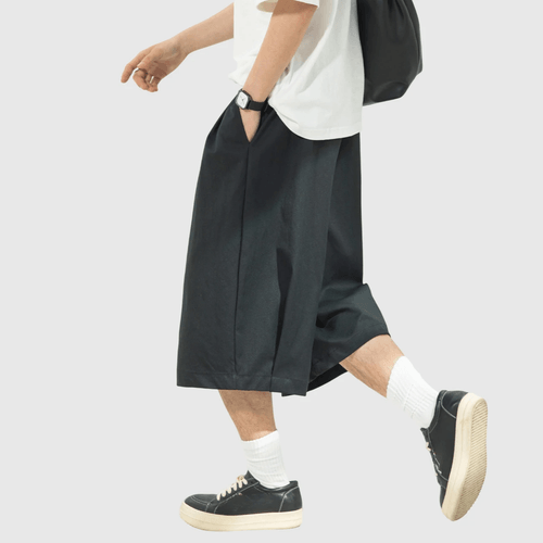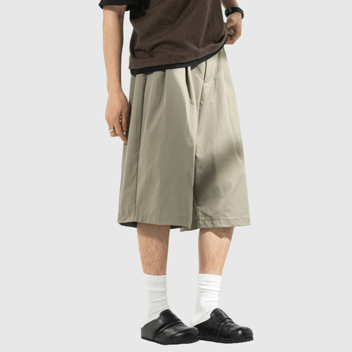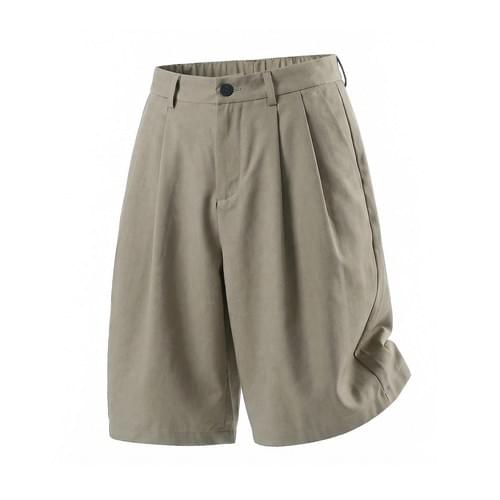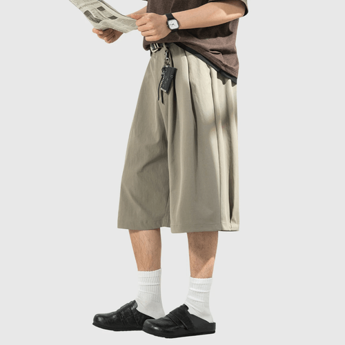日系基礎立體褶皺縫紉設計 闊腳透氣垂感七分短褲 [SBST-1148]