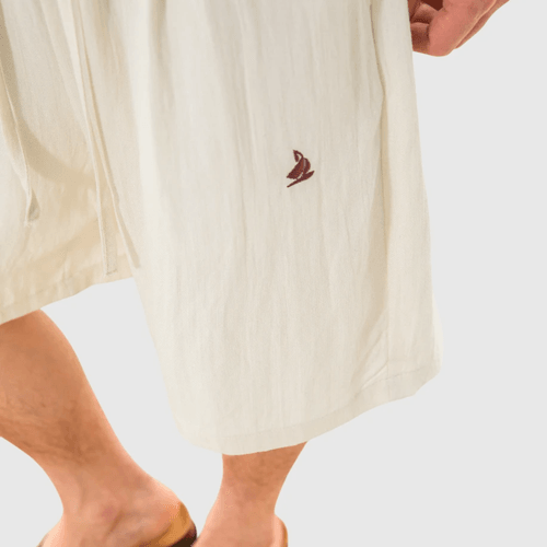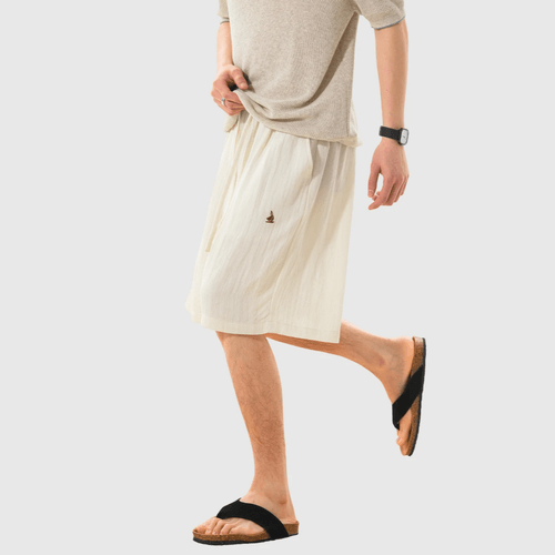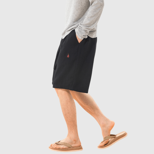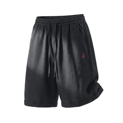 日系基礎輕便透氣細圖案刺繡 麻質垂感短褲 [SBST-1151]