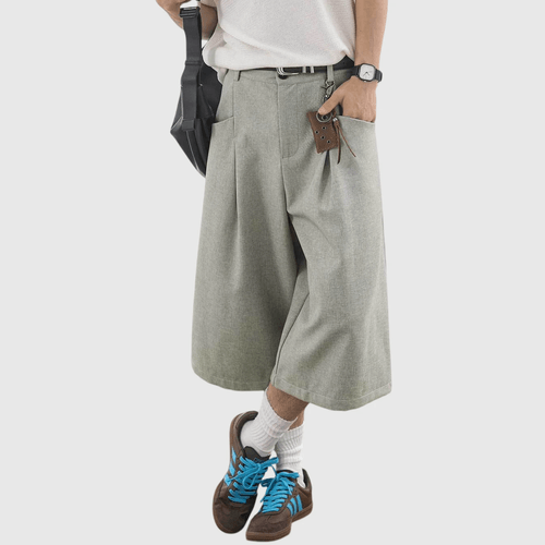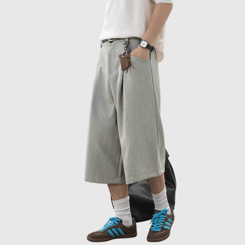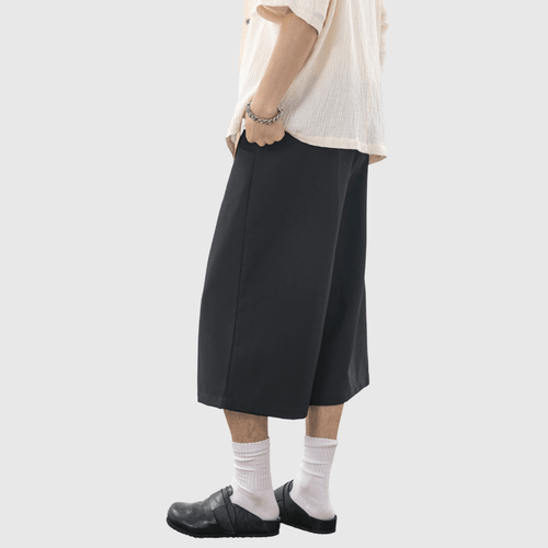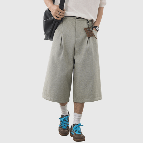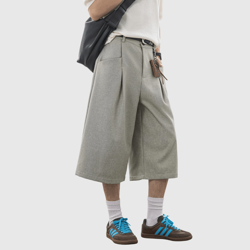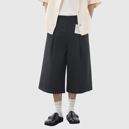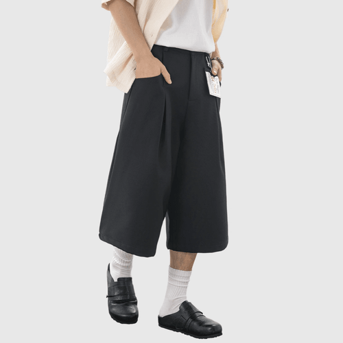 日系褶皺縫紉設計 麻質透氣垂感七分短褲 [SBST-1166]