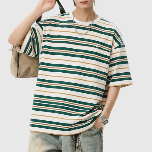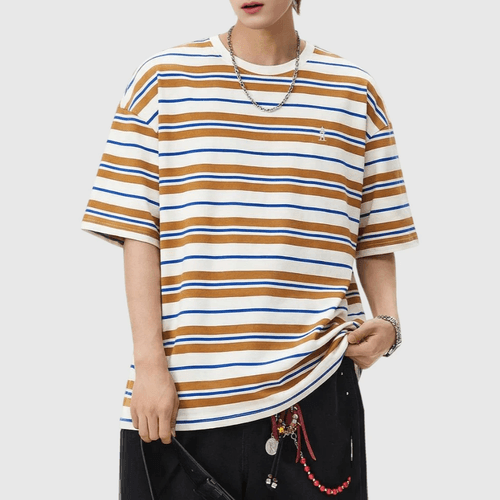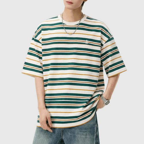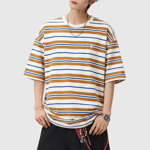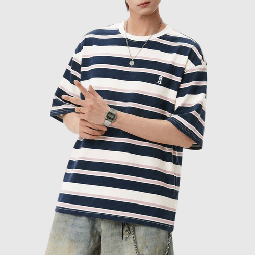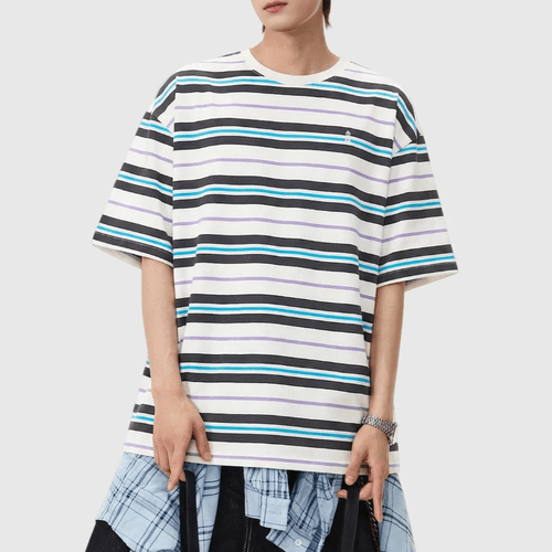 復古撞多色條紋燈塔小刺繡 純棉短袖 T-Shirt [SBT-1151]