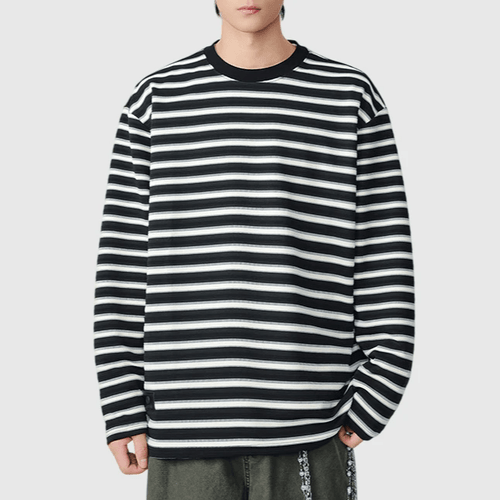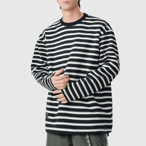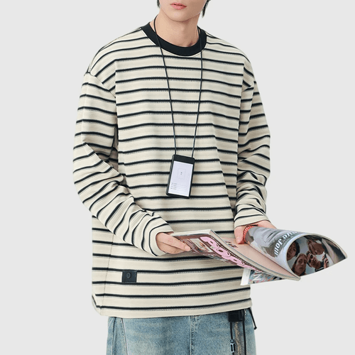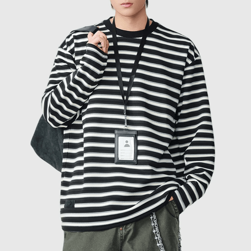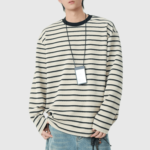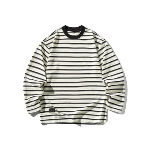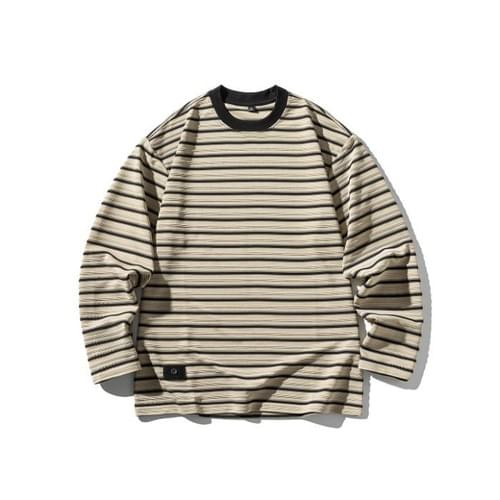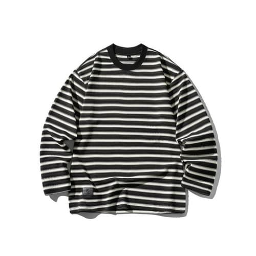 復古橫間條紋撞色立體編織 長袖 T-Shirt [SBT-1455]