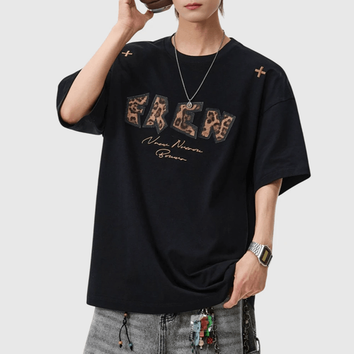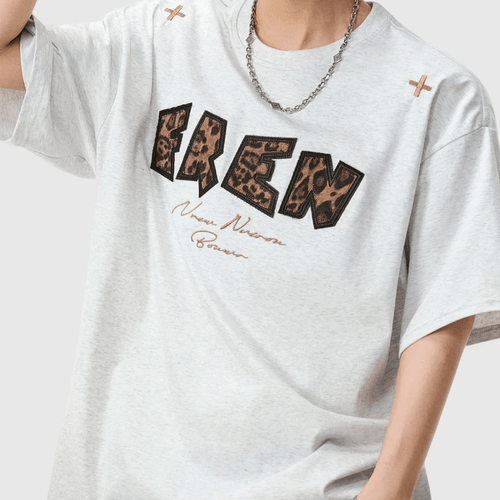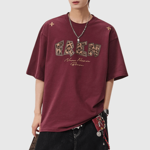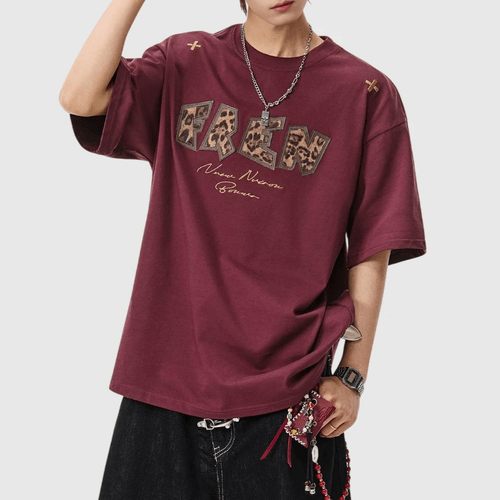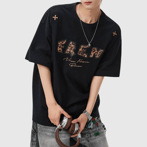 復古豹紋圖案立體印燙設計 純棉短袖 T-Shirt [SBT-1476]