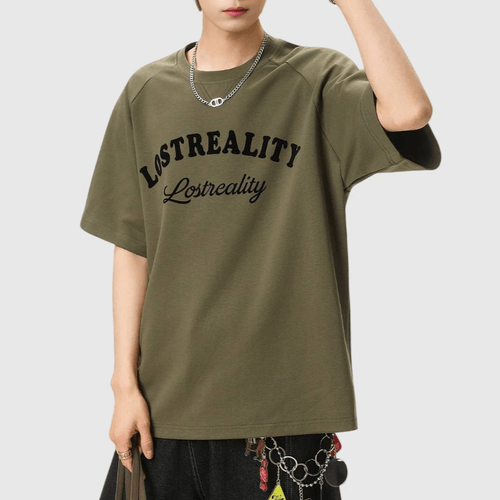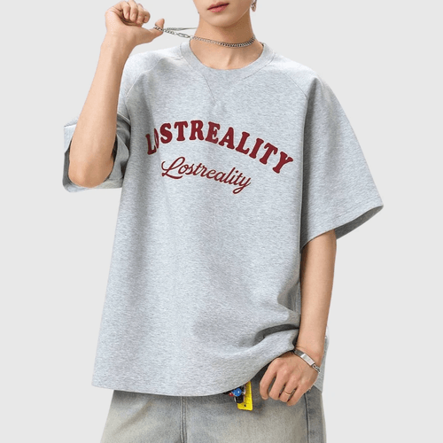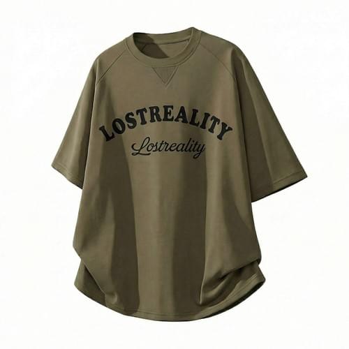 復古撞色植絨文字圖案印燙 純棉短袖 T-Shirt [SBT-1479]